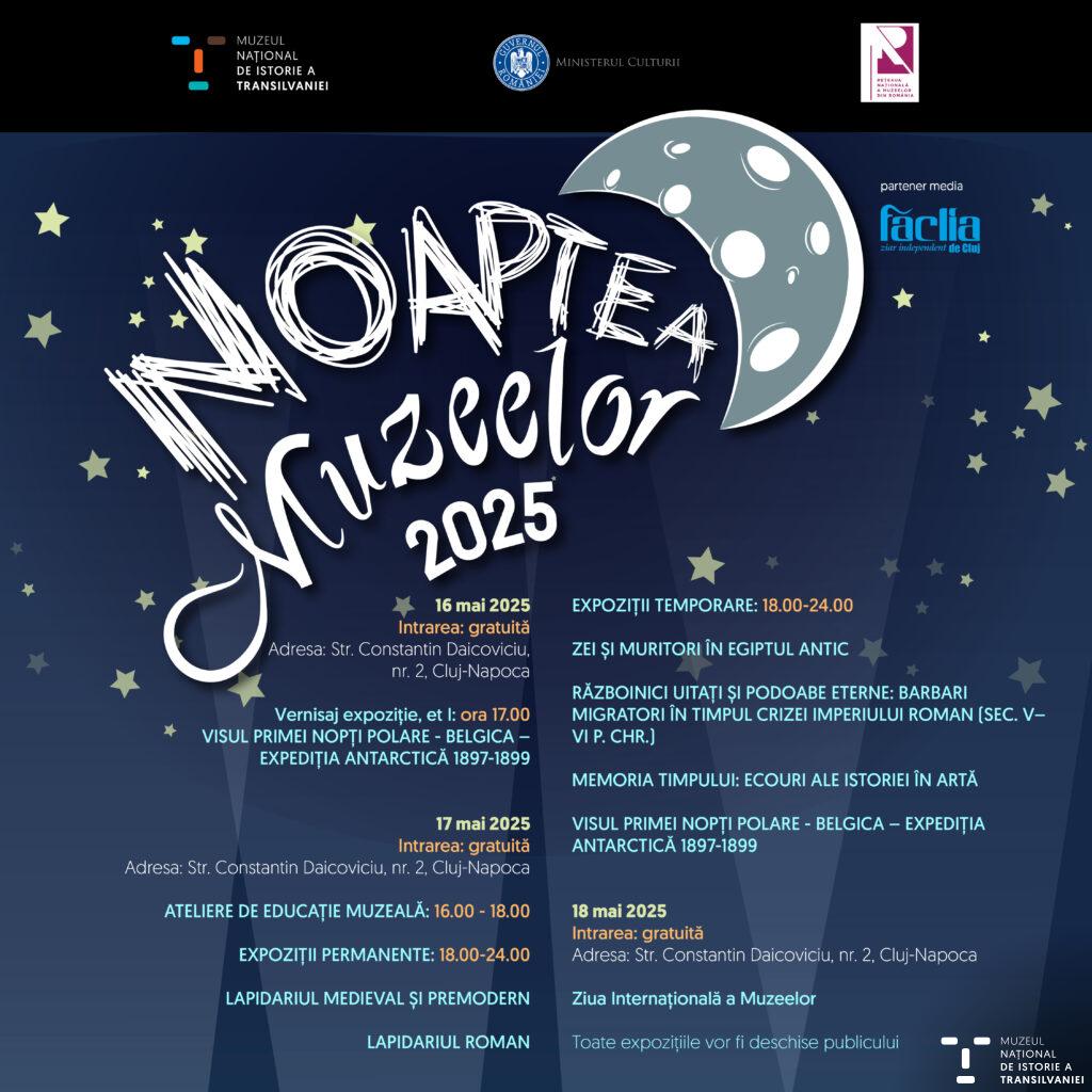 Start with us in a nocturnal adventure full of mysteriesWe will decipher clues, follow in the footsteps of the pharaohs, participate in themed games, get our faces painted and experience an evening full of laughter, surprises and discoveries, and within the exhibition Gods and Mortals in Ancient Egypt we are waiting for you with special guides in Romanian and Hungarian.